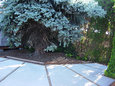 This flower bed beside the back patio and beneath the blue spruce tree needed some help.