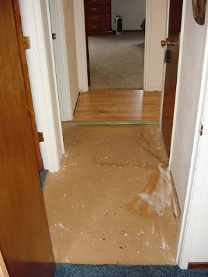 I'll need to cut and chisel the bottoms of each doorway frame along the hallway. With three bedrooms, two closets and one bathroom facing the hall, that will be twelve frames that I'll need to cut slightly above the floor level so that the laminate flooring and the underlay pad can slip under them.